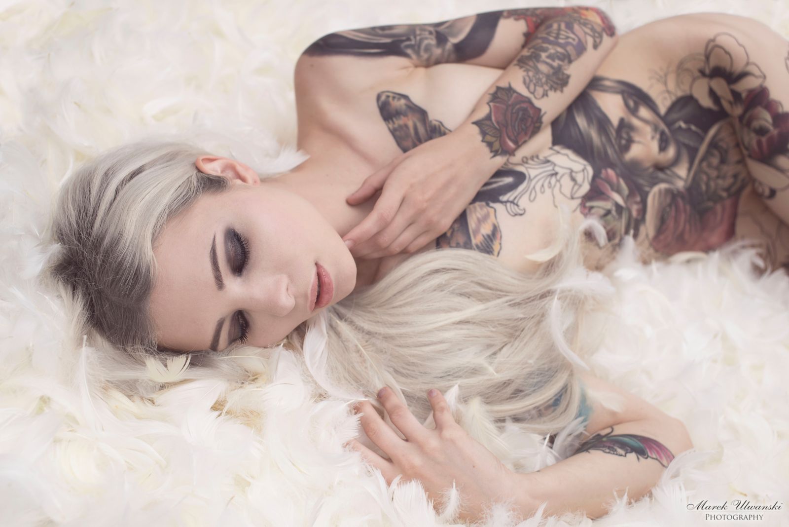 Zdjęcie z portfolio marek (Fotograf) w kategorii Glamour, przedstawiające blondynka, tutaże, piórka